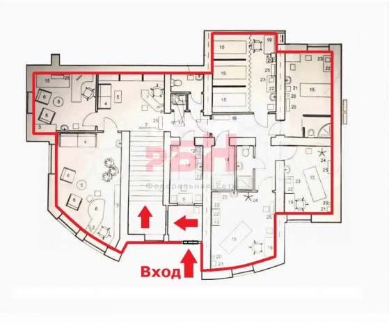 - планировка: зона ресепшен, 6 кабинетов с мокрыми точками, 2 с/у, кухня, техническое помещение;