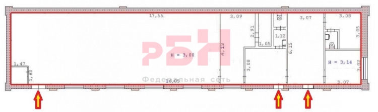 - Высота потолков в помещении - 3,0 м;