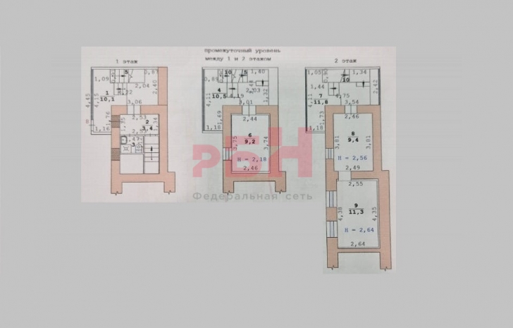 - этаж: подвал, 1 этаж, 2 этаж;