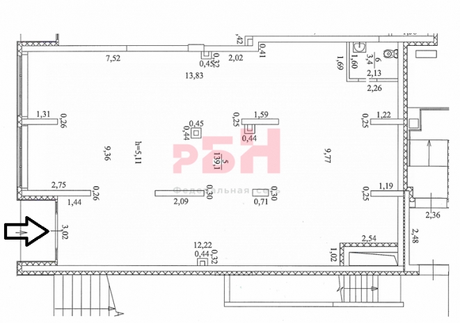 - высота потолков 5,11м;