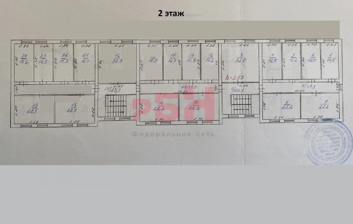 -На 1 этаже расположено 19 комнат, на 2 этаже 20