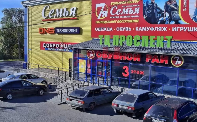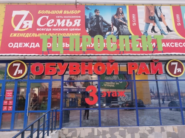 - на 1ом этаже расположены: ТС Доброцен, DNS технопойнт, на 2ом этаже: магазин "Семья", на 3ем этаже: магазин "Обувной рай";