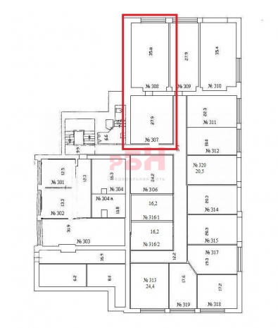 -офис разделен на 2 кабинета;