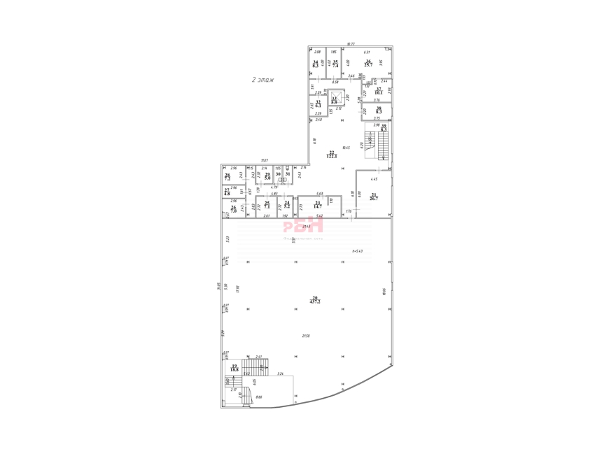 Площадь 2 этажа – 752,9 м2, торговый зал – 625,6 м2. Высота потолков – 4,4 м.