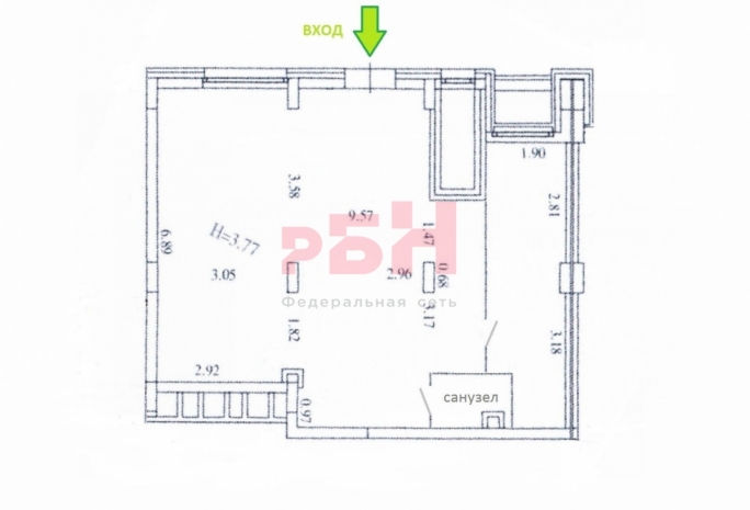 - высота потолков - 3,77 м;