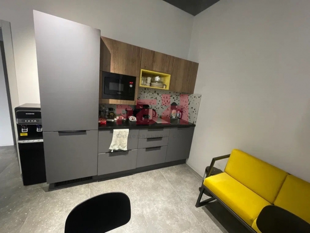 -Дизайнерский ремонт: окна+перегородки – алюминий, пол - керамогранит 1200*600, потолок – стиль лофт, стены – обои под покраску, немецкие радиаторы;