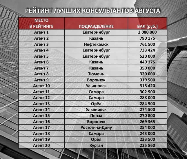 ГлавнаяНовостиНовости компании — Рейтинг лучших консультантов августа